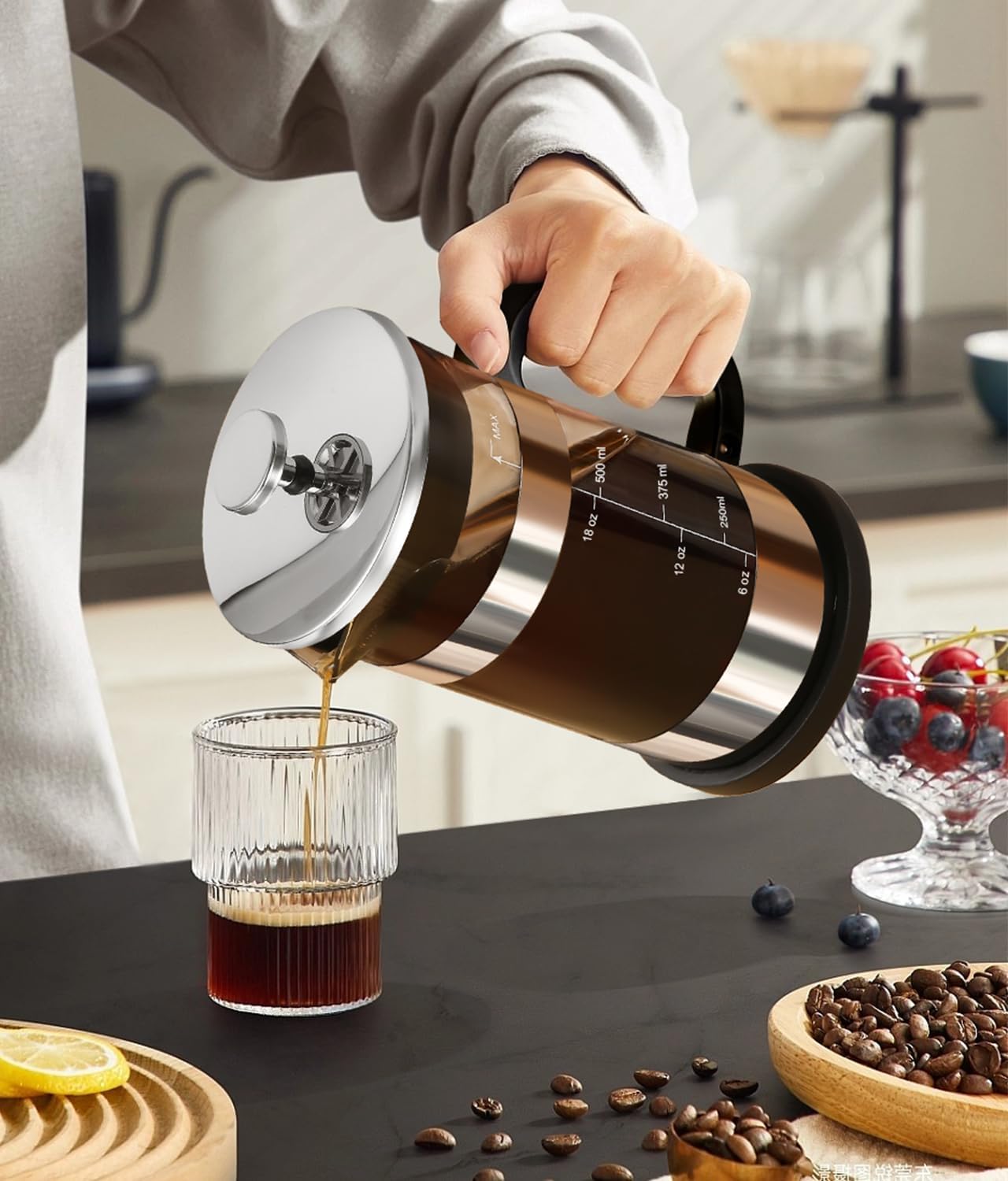 【MULTIPLE USES】Besides using the french press as a coffee maker, it is also handy appliance to make tea, mct oil coffee, hot chocolate, cold brew, frothed milk, almond milk, cashew milk, fruit infusions, and plant and herbal drinks. Suitable for house warmings, weddings, birthdays, holidays and all coffee/tea lovers & healthy foodies!
