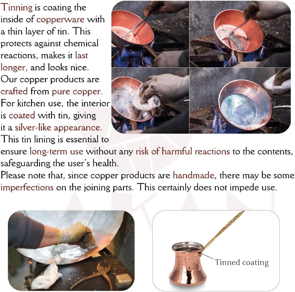COPPER Coffee Maker for STOVETOP: It is perfect for Greek Coffee, and Arabic Coffee. The briki can also be used for butter melting, sauce making, brewing herbal tea, and chocolate preparation, especially Dubai chocolate. It is great for AYURVEDA Health Benefits.