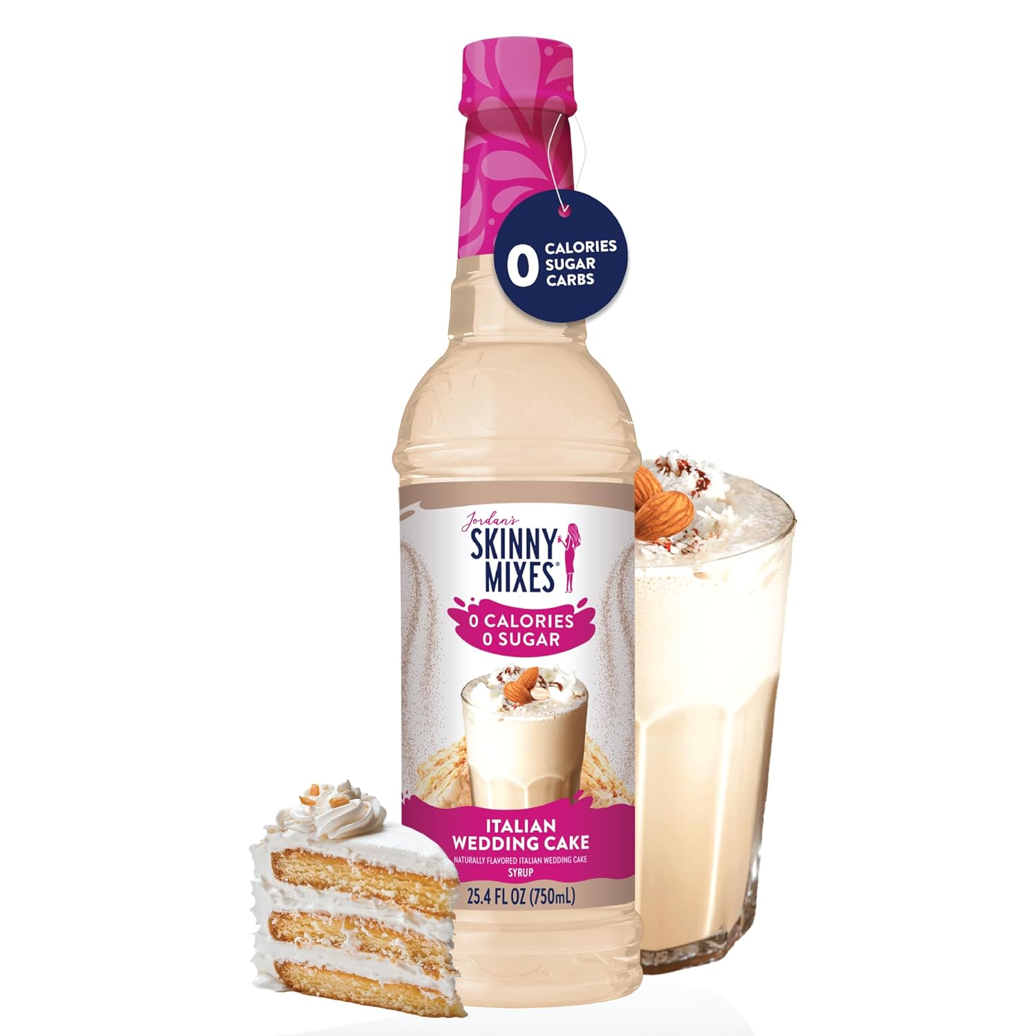 Jordan’s Skinny Syrups Sugar Free Coffee Syrup, Italian Wedding Cake Syrup Flavor, Zero Calorie Flavoring for Latte, Protein Shake, Cocktail & More, Gluten Free, Keto Friendly, 25.4 Fl Oz, 1 Pack
