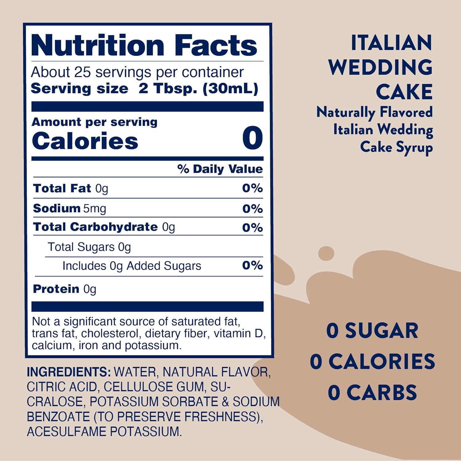 Step into the romantic allure of our New Dessert Collection with the Italian Wedding Cake Syrup! Delight in the luxurious blend of creamy vanilla, sweet almond, and a hint of citrus flavors, all in our 0 sugar, 0 carb, 0 calorie syrup. Designed to captivate your senses while honoring your health ambitions, this syrup brings the joy and elegance of a traditional Italian wedding cake to your everyday moments. Celebrate life’s sweetest milestones with each enchanting pour! 💒🍰