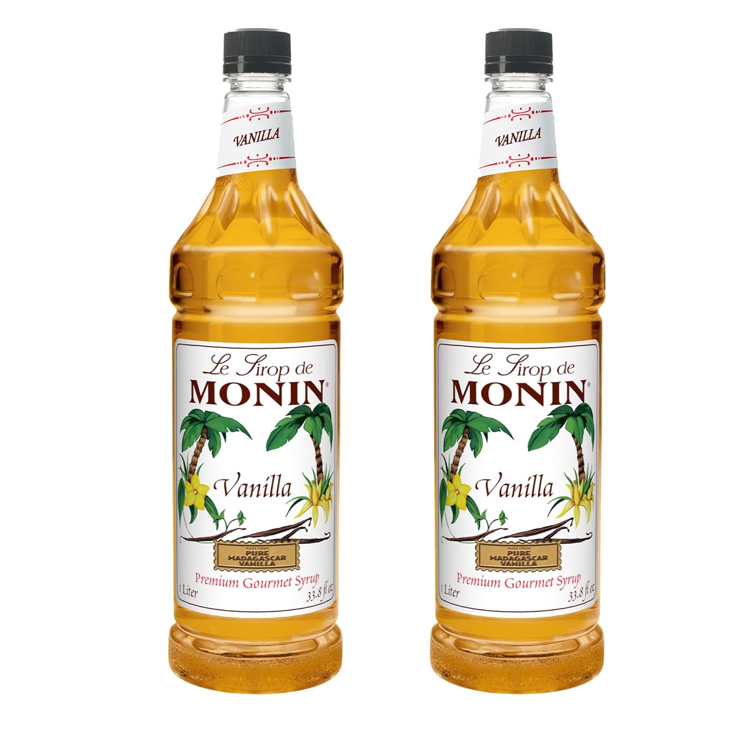 Monin – Vanilla Syrup, Versatile Flavor, Great for Coffee, Shakes, and Cocktails, Gluten-Free, Non-GMO (1 Liter, 2-Pack)